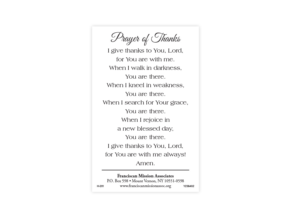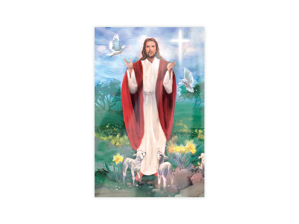 Esta tarjeta de oración de Pascua (2¾” x 4¼”) presenta una imagen a todo color de Jesús resucitado en el frente y una Oración de Acción de Gracias en el reverso (en inglés).