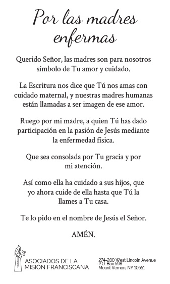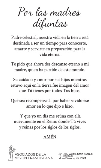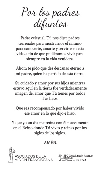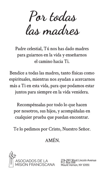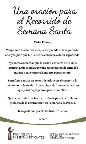 Los Asociados de la Misión Franciscana están constituidos como una organización exenta de impuestos conforme a las leyes del Estado de Nueva York. Las contribuciones son deducibles en la medida permitida por las leyes fiscales federales y estatales. (EIN: 13-1982783)
