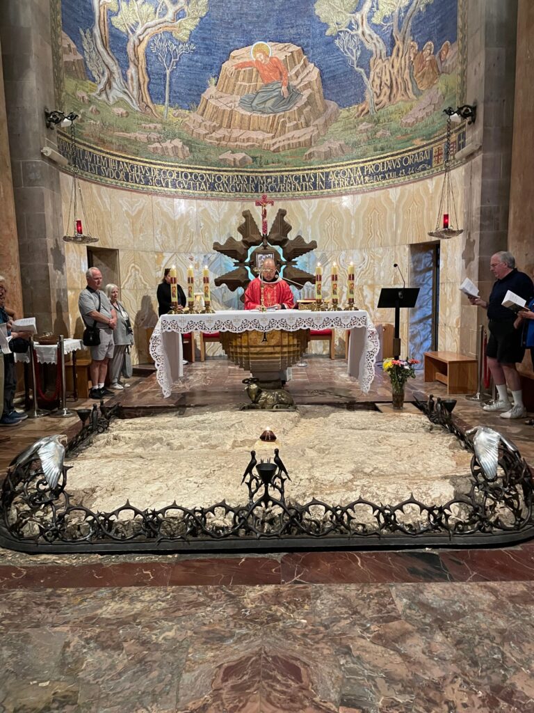 The first days took the pilgrims to Caesarea, Mount Carmel, Nazareth, and Cana, where they explored significant biblical locations and celebrated Mass. In the following days, they explored the Sea of Galilee, visiting Tabgha, Capernaum, and Mount of the Beatitudes.